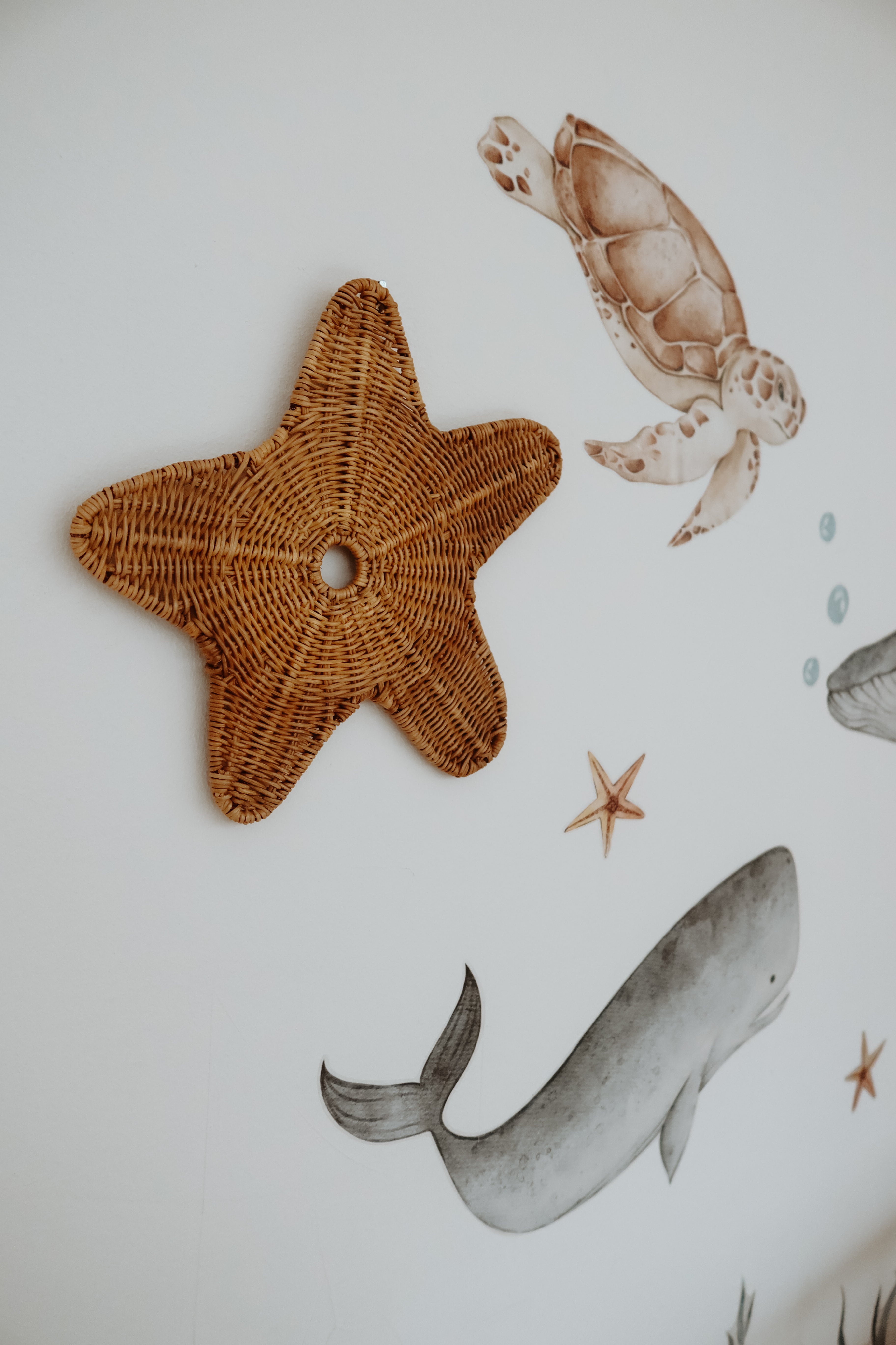 Dobby de duikboot wanddecoratie, verkrijgbaar in 2 maten, handgemaakt van hoogwaardige rotan, combineert op speelse wijze een onder water thema met de natuurlijke charme van handgeweven materialen. Het design toont een speelse, duikboot vorm.