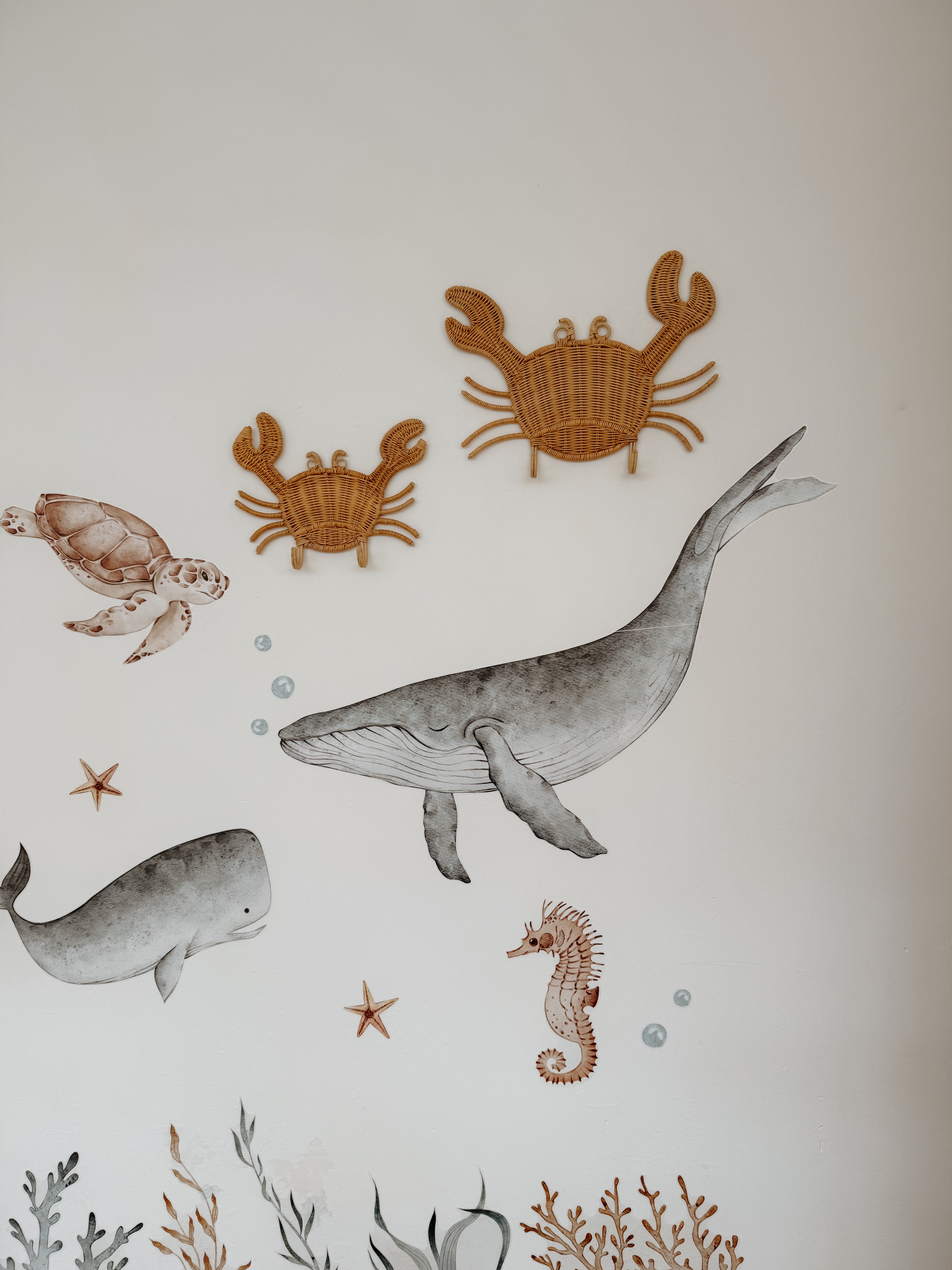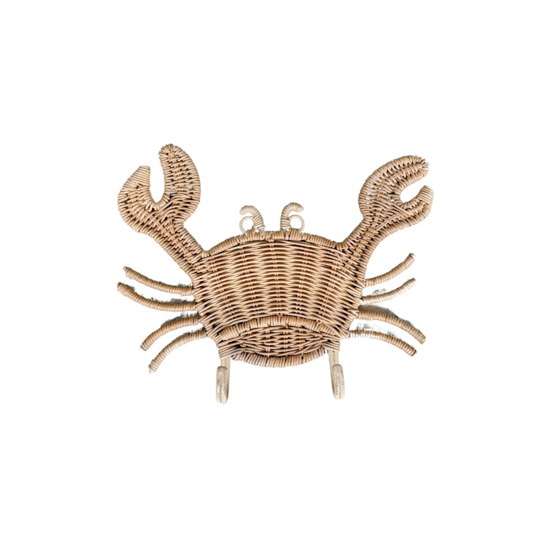 Hermit de Krab wandhaak, verkrijgbaar in 2 maten, handgemaakt van hoogwaardige rotan, combineert op speelse wijze een onder water thema met de natuurlijke charme van handgeweven materialen. Het design toont een gedetailleerde, sierlijke krabvorm.