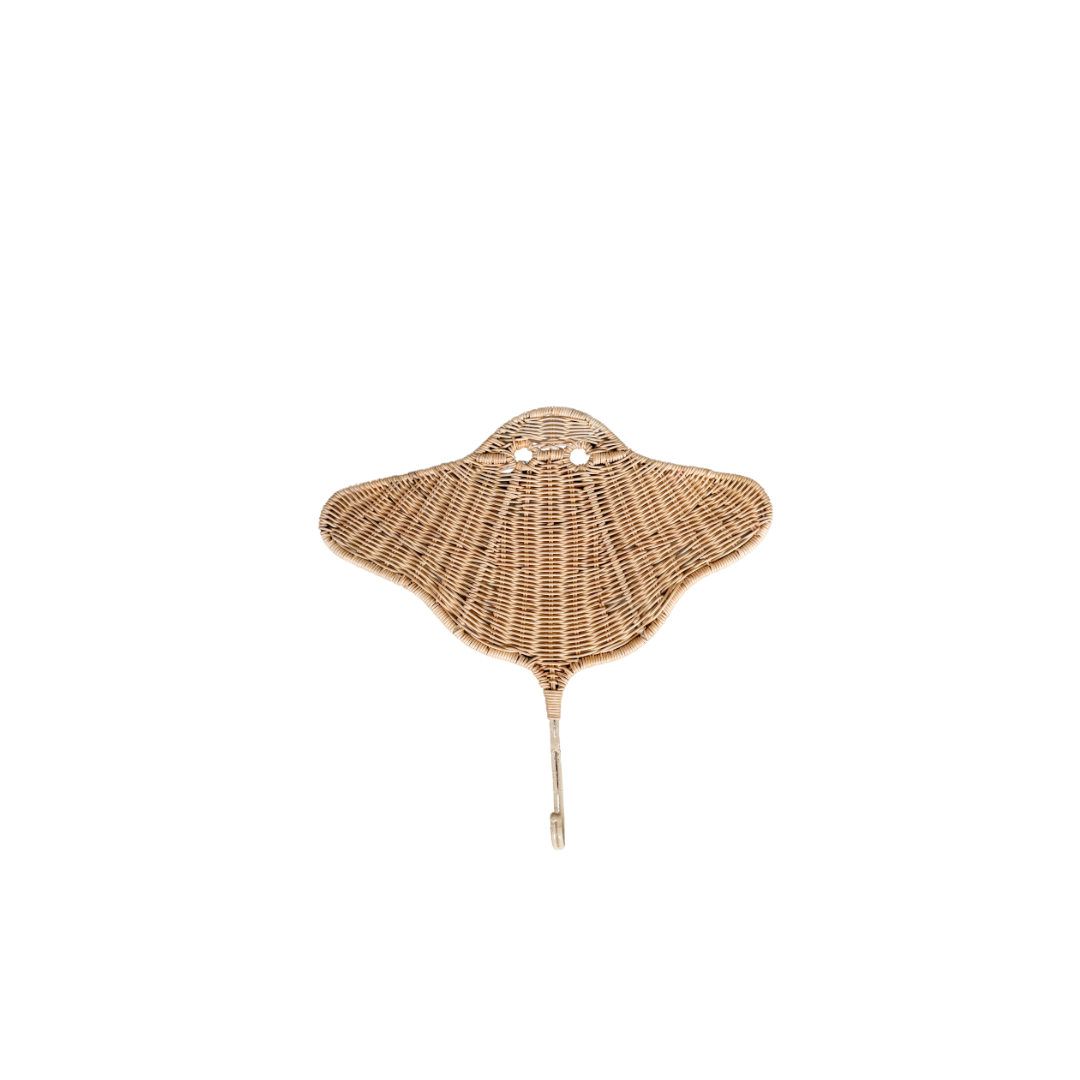 Hugo de Rog wandhaak, verkrijgbaar in 2 maten, handgemaakt van hoogwaardige rotan, combineert op speelse wijze een onder water thema met de natuurlijke charme van handgeweven materialen. Het design toont een gedetailleerde, sierlijke Rogvorm.