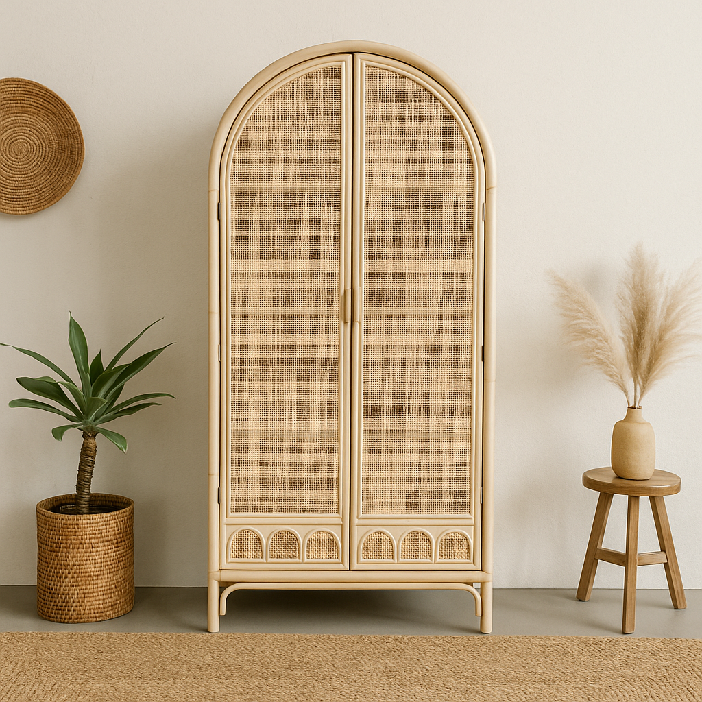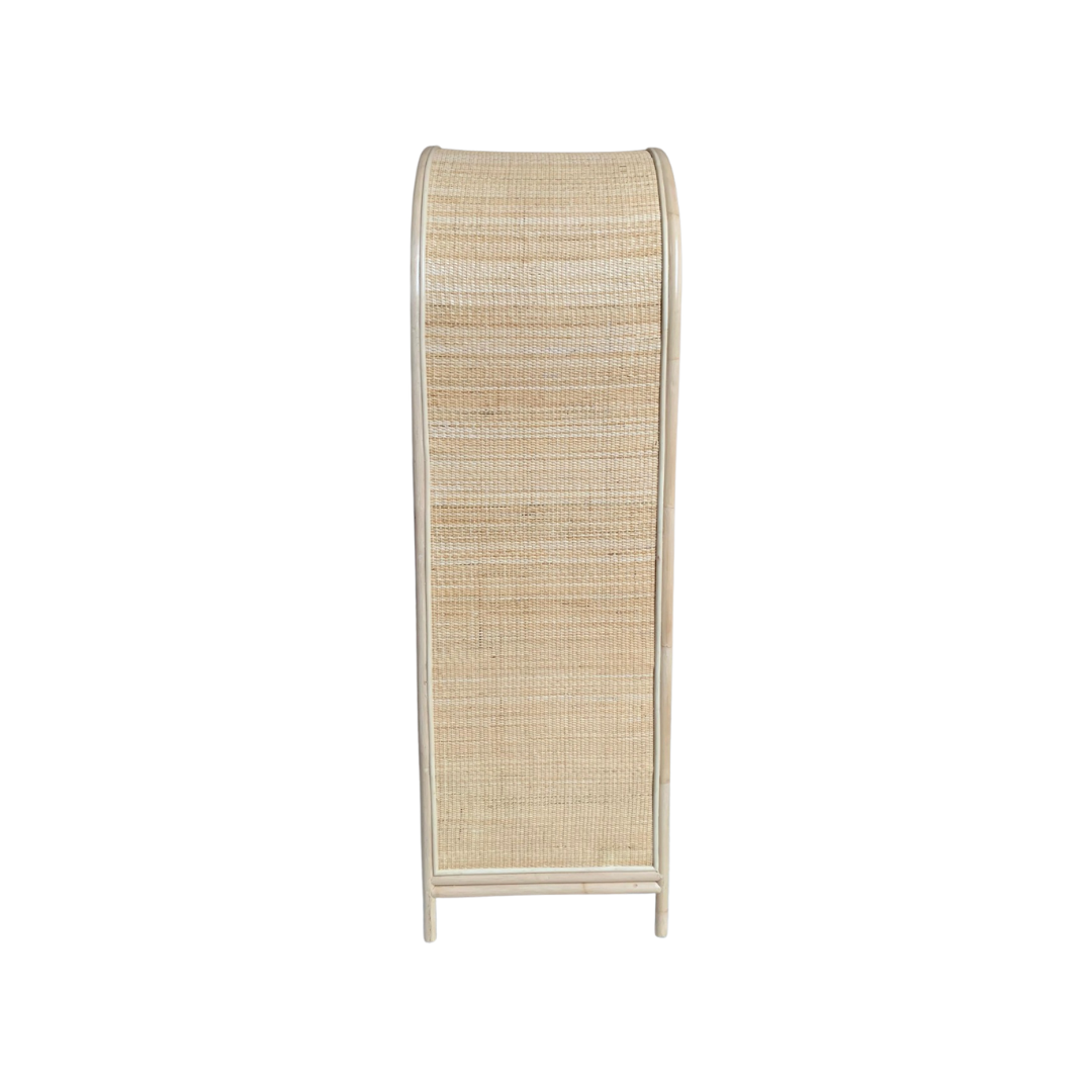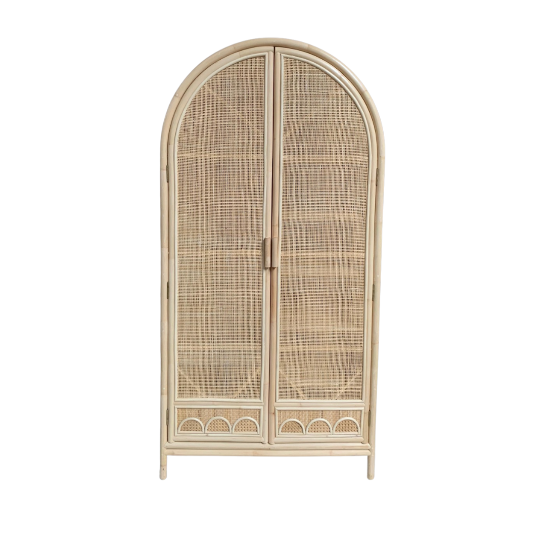 Breng warmte en karakter in de kinderkamer met deze prachtige handgemaakte rotan kast. De kast is niet alleen een echte blikvanger dankzij het elegante boogdesign en het fijne vlechtwerk, maar ook bijzonder praktisch in gebruik.