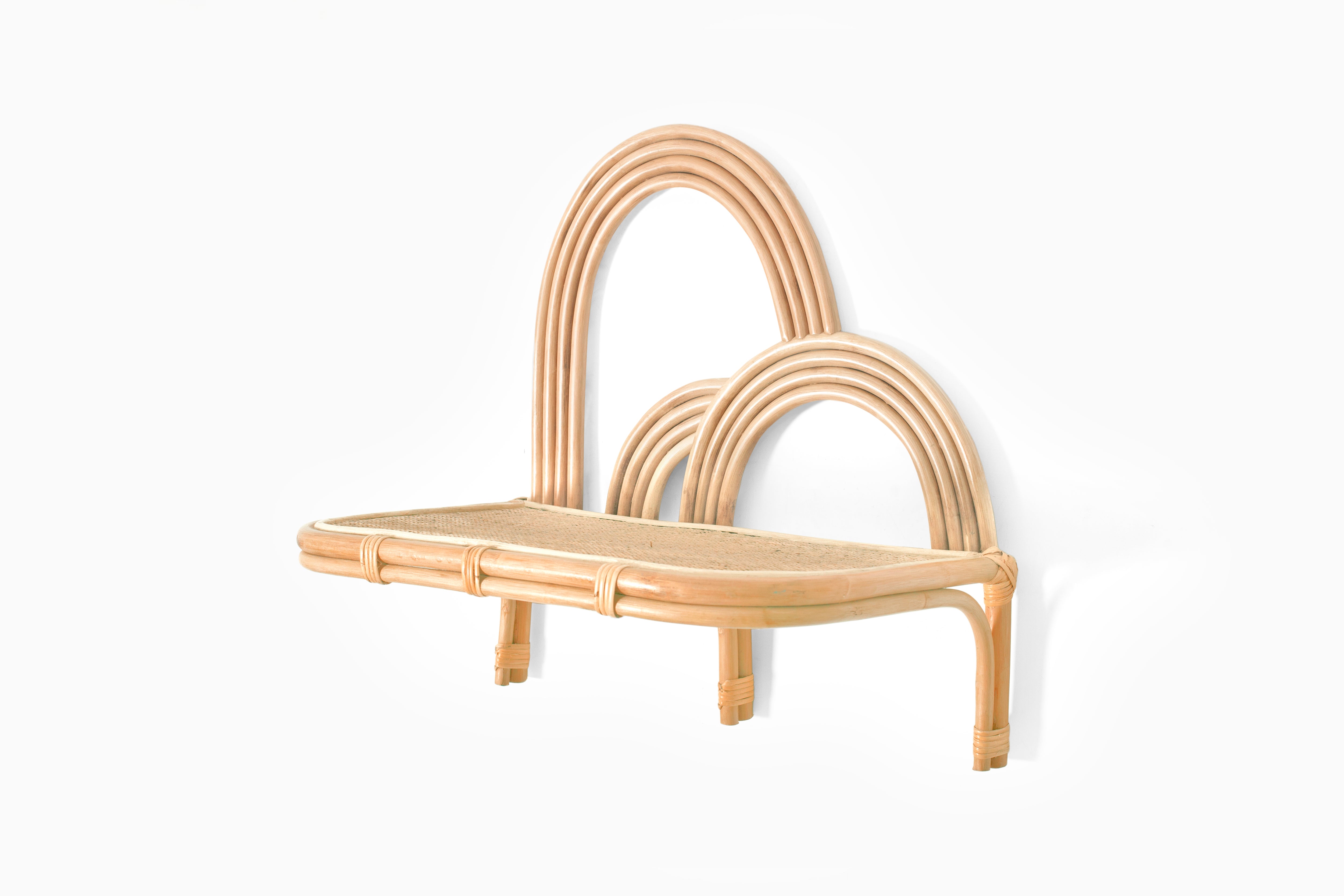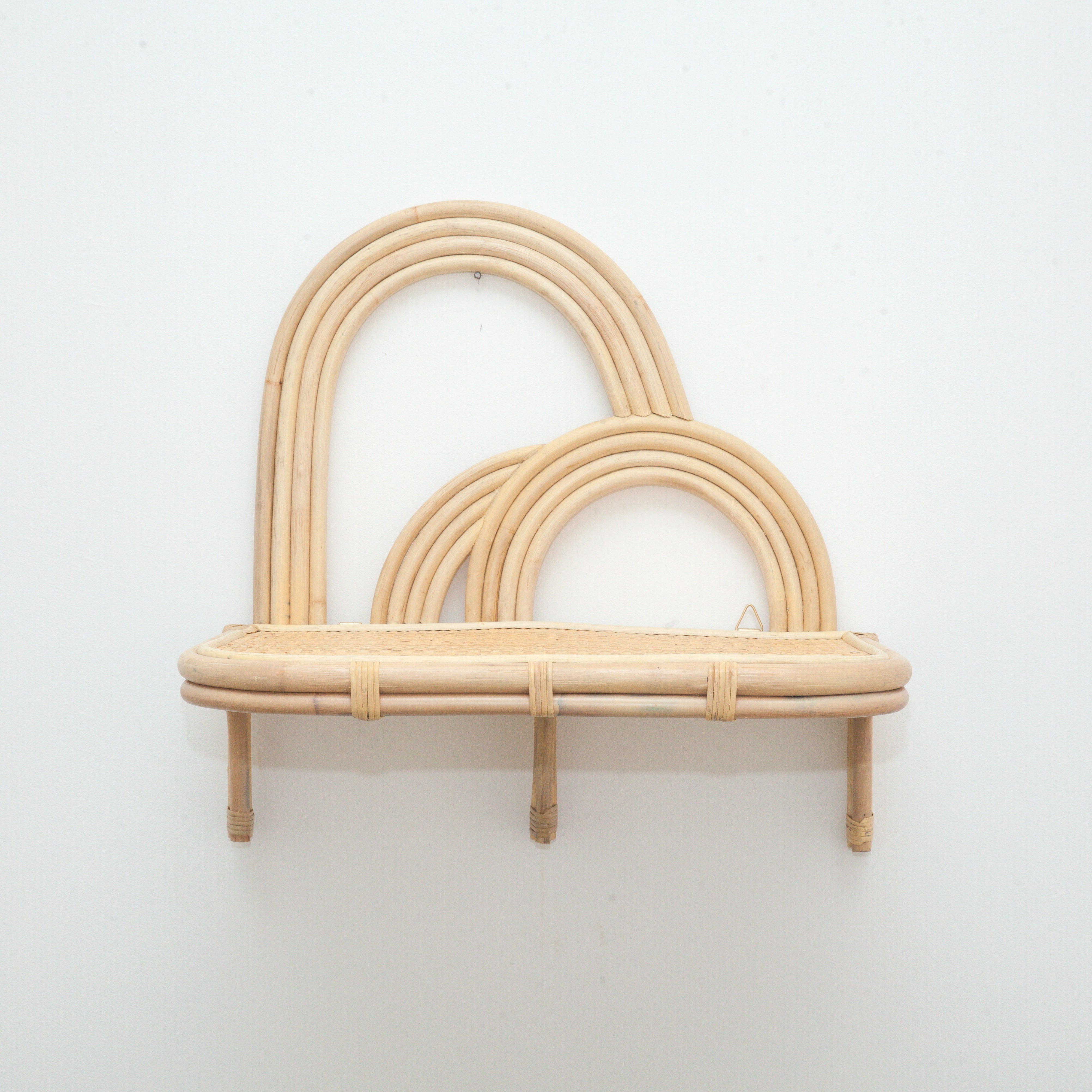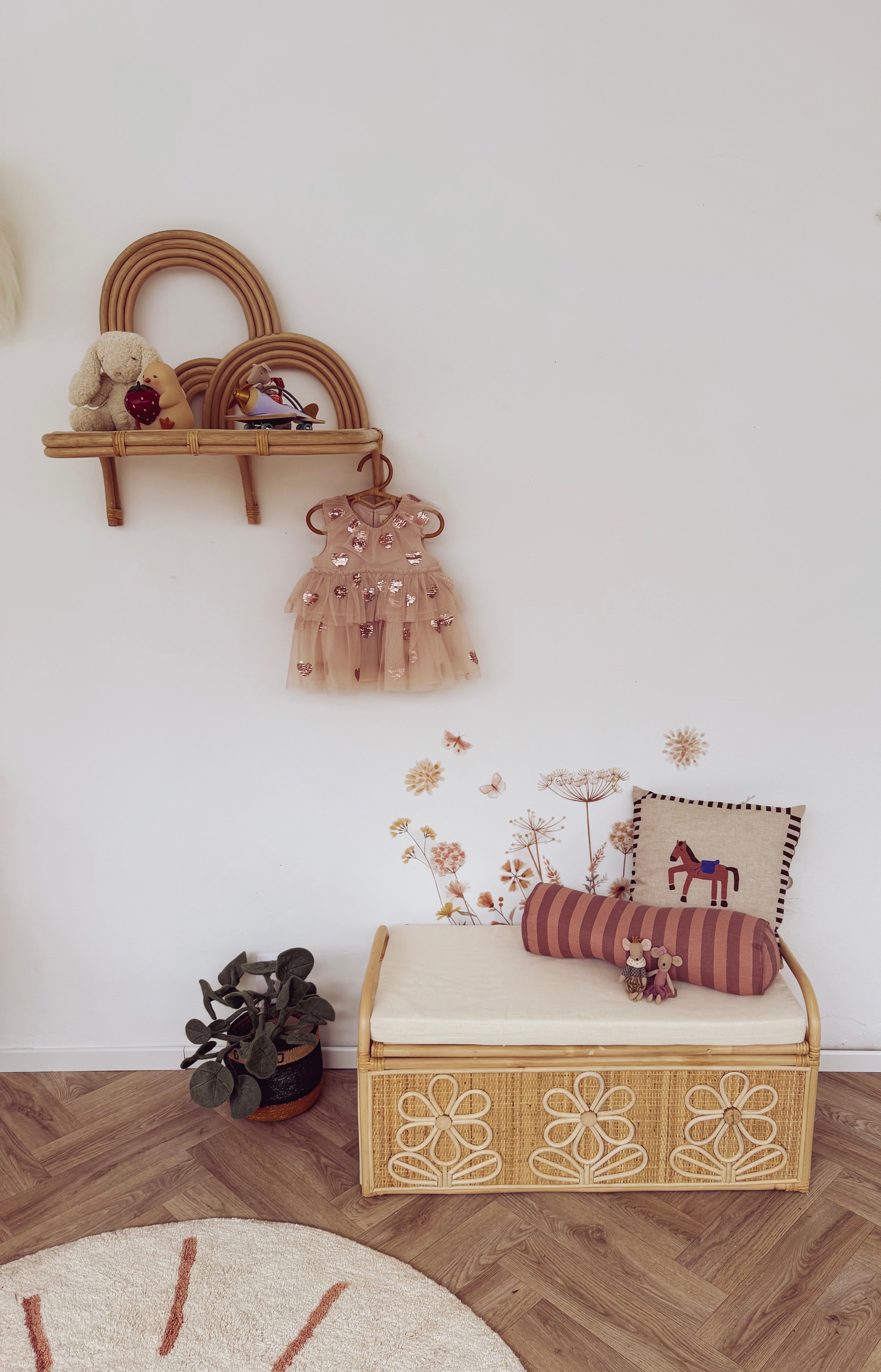 Dit is onze nieuwe wandhanger Sira, met een tableautje waar je iets op kan zetten. Denk aan een plantje, knuffel, kaarsje,... De wandhanger is een mooi decoratief stuk dat warmte en een natuurlijke uitstraling toevoegt aan elke ruimte.