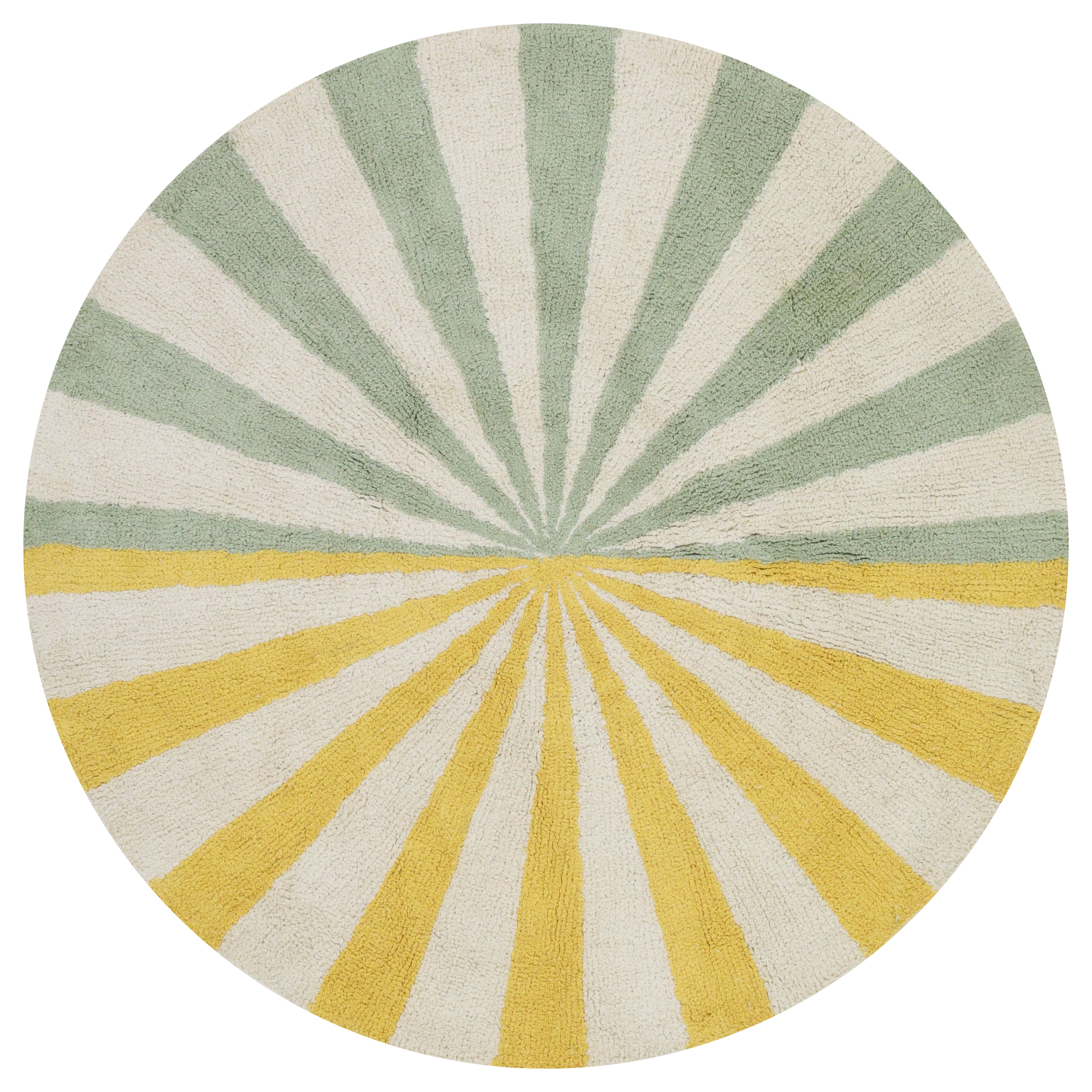 Met z’n vrolijke zonnestralen in frisse mint en zonnig geel is dit kleed een echte sfeermaker in de kinderkamer. Maar stiekem past hij ook superleuk in een leeshoekje, speelhoek of zelfs je home office.
