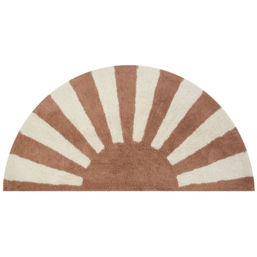 Met zijn warme roestbruine kleur en stralende design brengt dit halve ronde vloerkleed instant gezelligheid in huis. Perfect voor bij het bed, onder een boekenplank of in een knusse speelhoek.
