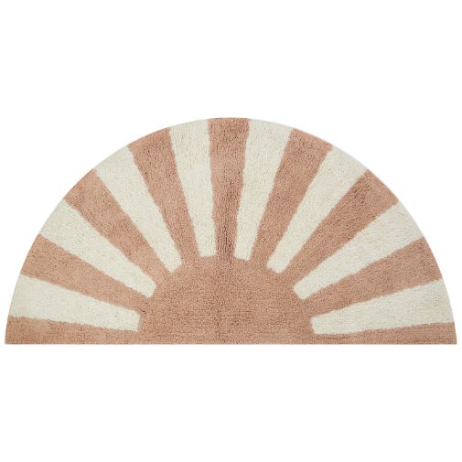 Met zijn warme roestbruine kleur en stralende design brengt dit halve ronde vloerkleed instant gezelligheid in huis. Perfect voor bij het bed, onder een boekenplank of in een knusse speelhoek.